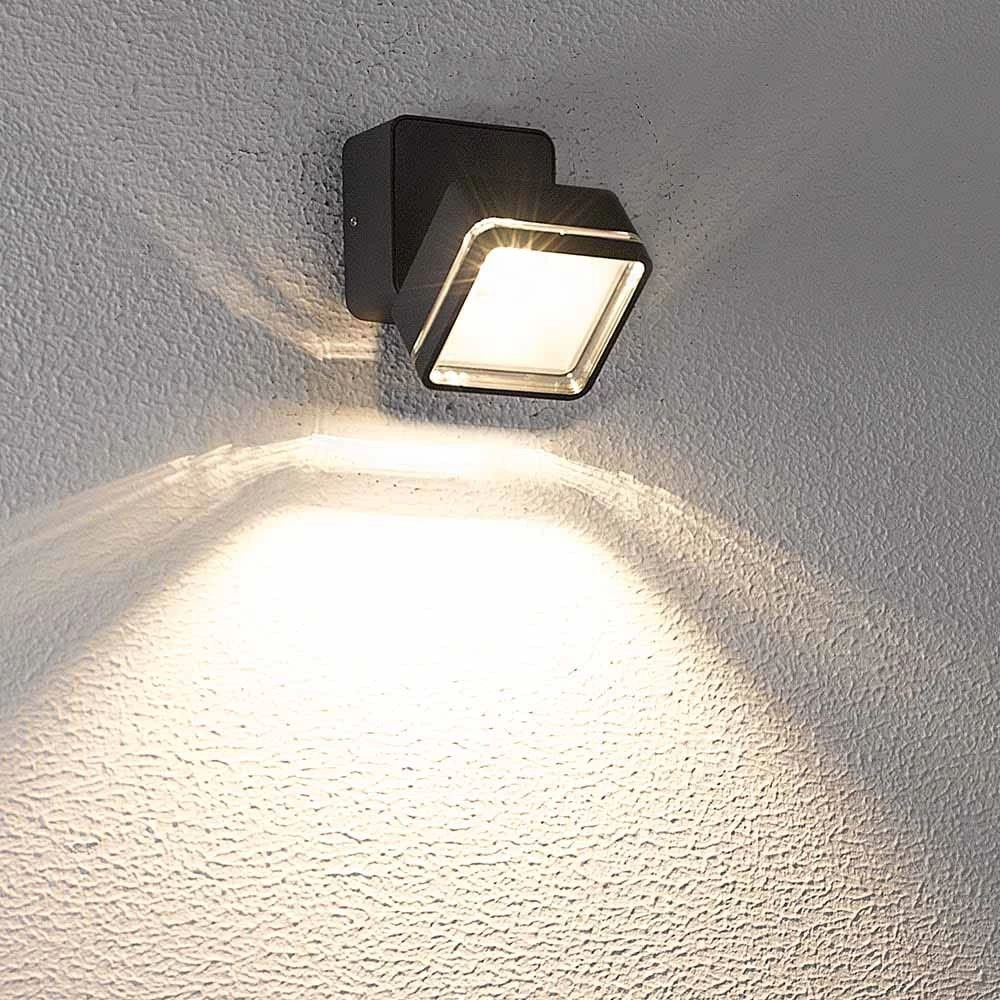 Aplique de pared led con estructura orientable rades. Su compacto tamaño de forma cuadrada permite instalarlo como iluminación en diferentes puntos del jardín o la terraza. Puedes instalarlo en el techo proyectando la luz hacia abajo o en la pared como un aplique con la estructura abatida (45º).dimensiones: alto 10 cm. Largo 9 cm. Ancho 9 cm.