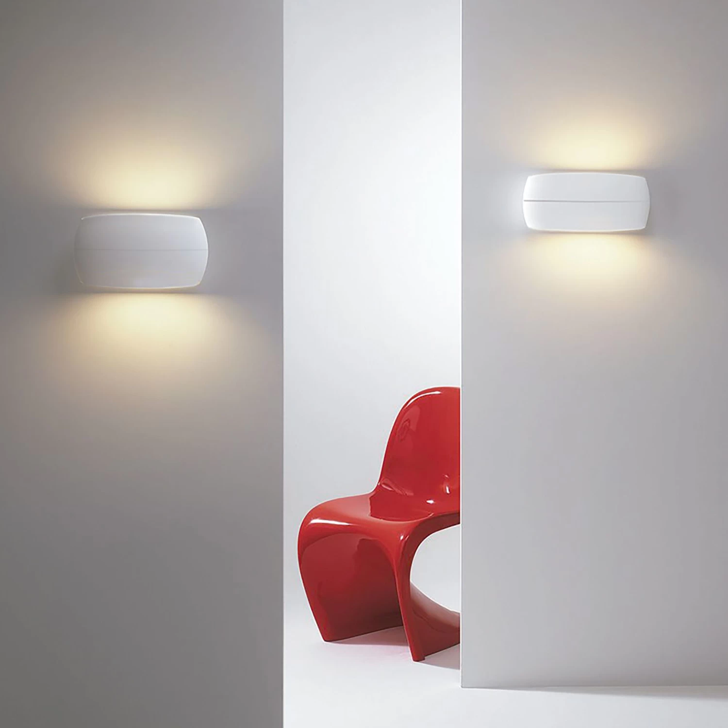 Aplique led de pared de aluminio, ovalado en acabado blanco mate. Apto especialmente para exterior por su alto índice de protección frente a la humedad ip54, lo hace ideal para muros y pasillos. Haz de luz indirecta, blanca cálida (3000k y 950lm), en dos direcciónes, la luz se emite hacia arriba, hacia abajo, o hacia los lados. Dimensiones: 20×5,3x11cm