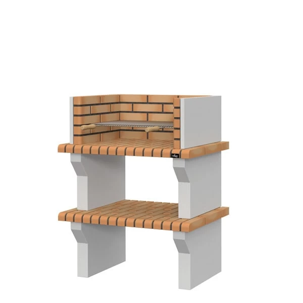 Barbacoa de obra de diseño rústico, fabricada en ladrillo refractario amarillo y hormigón. Incluye parrilla y una repisa de ladrillo para colocar alimentos o utensilios.Permite el cocinado con carbón o leña pequeña, dará gran sabor a tus platos. Cocinar en el exterior es la mejor opción para disfrutar de buenos momentos en familia y con amigos.La salida de humos es abierta.De montaje modular es necesario mortero refractario para su instalación.Compatible con parrilla simple 66 x 38 cmCompatible con base de hormigón para barbacoa