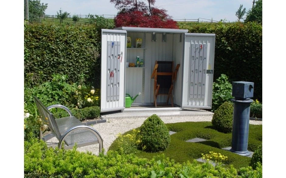 CASETA METALICA BIOHORT JARDIN PANORAMA P2 DOBLE PUERTA COLOR GRIS CUARZO