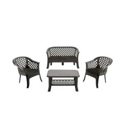 Fabricado en una combinación de materiales de alta calidad, un conjunto resistente al uso y las inclemencias metereológicas como los rayos uv o la lluvia. Formado por una mesita, dos sillones y un sofá, podrán disfrutar de él hasta 4 personas.