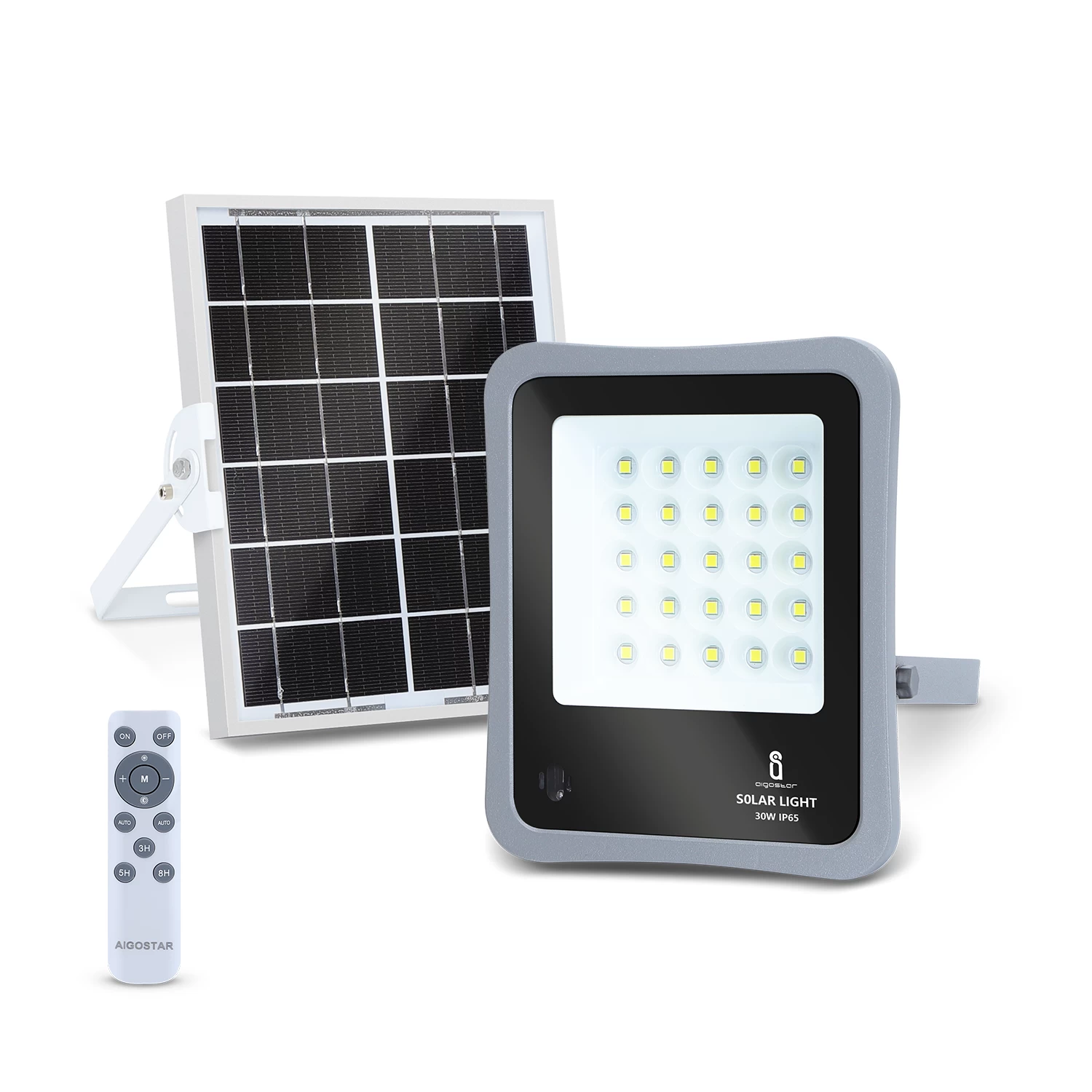 Aigostar – foco proyector led solar con mando a distancia,30w,6500k luz blanca resistente al agua ip65. Perfectos para exterior jardín,patios,caminos o garajes [clase de eficiencia energética f] 【panel solar de alta eficiencia】 el panel solar fotoeléctrico es de alta eficiencia, transforma hasta el 23% de energía solar en energía eléctrica y su batería de iones de litio de 5000 mah, permitirá que funcione durante 10-12 horas consecutivas si se carga por completo.