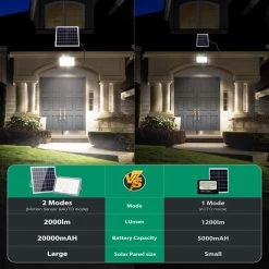 Aigostar Foco LED Solar Con Sensor Movimiento 200W 6500K, Mando A Distancia