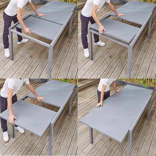 La mesa de jardín Moorea en color gris mate, está hecha de aluminio con una tapa de vidrio templado, por lo que es duradera, fácil de limpiar y mantener.Al ser extensible esta mesa de jardín es práctica para cuando tienes visitas, ya que puede alojar hasta 8 personas. Es ideal para disfrutar en familia o con amigos.Medida mesa cerrada: alto 75 x ancho 90 x longitud 140 cm.Medida mesa abierta: alto 75 x ancho 90 x longitud 200 cm.Su look combina con todos los estilos de jardín, puedes completar la colección combinándolo con nuestro Juego de Café Moorea y los Asientos Batz.