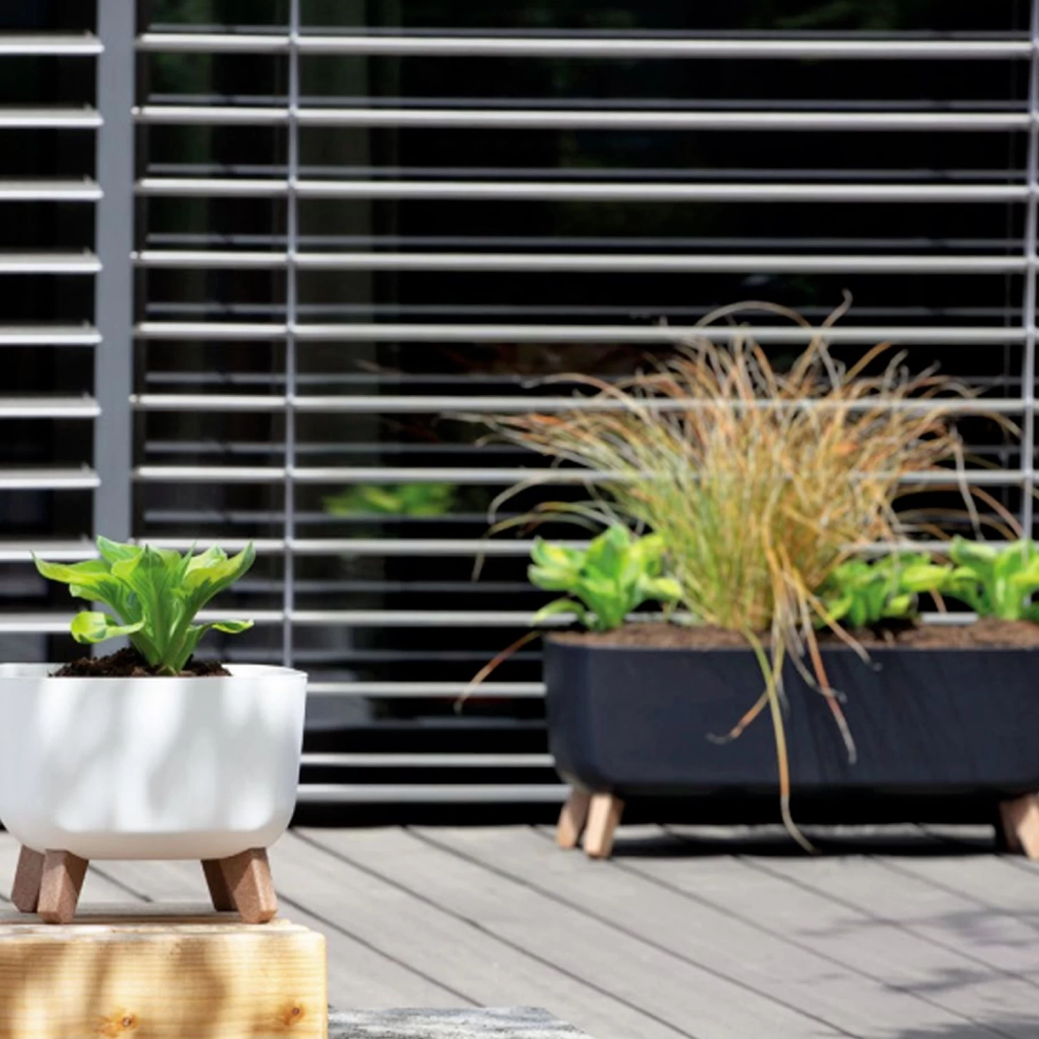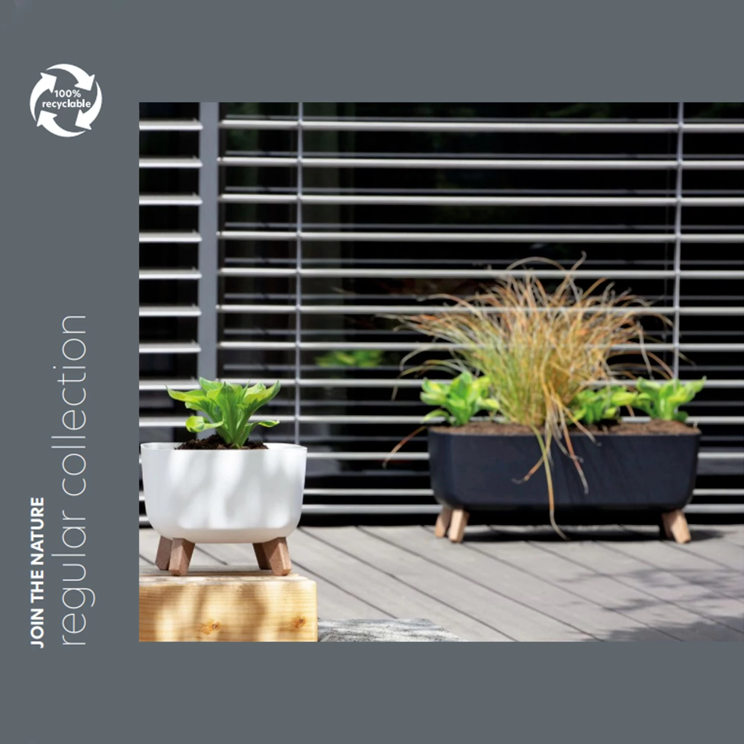 una idea brillante en el diseño gracia, tiene un inserto en el fondo de la macera para hidratar adecuadamente las plantas.