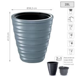 Prosperplast Maceta FREZE 28L., Con Depósito, 383x383x419, Color Gris Claro